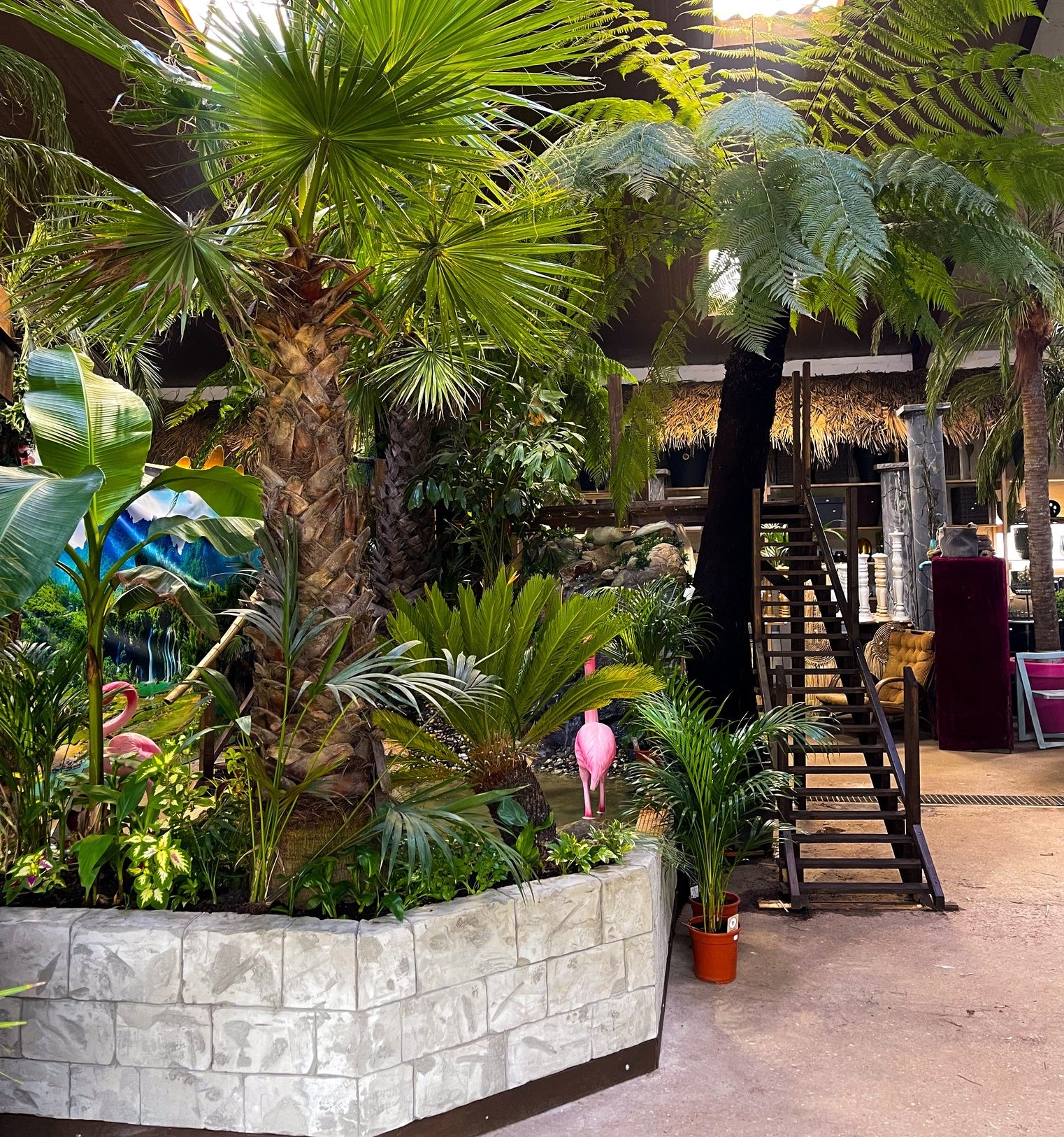 Unser Standort ist mehr als ein Gartencenter; Es ist ein tropisches Reiseziel, das für jeden ein einzigartiges Erlebnis bietet. Ein Ort zum Entspannen, Genießen und Inspirieren mit tropischen Schaugärten, kulturellen Attraktionen, Kinderspielplätzen, Bildungsprogrammen und einem Strandpavillon mit lokalen Gerichten.