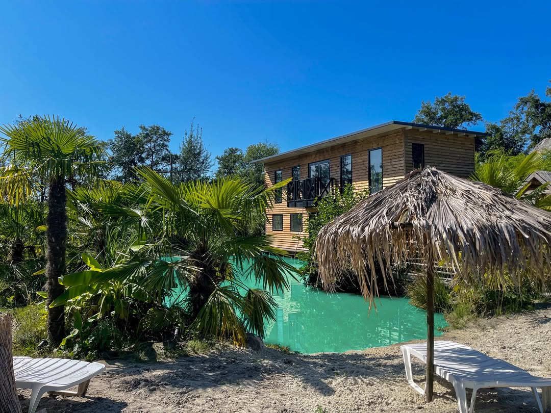Lassen Sie sich von unseren wunderschönen Schaugärten überraschen, in denen tropische Träume zum Leben erwachen. Das Foto zeigt einen voll angelegten Garten mit Bastsonnenschirmen , Strandstühlen und klarem blauen Wasser – eine Oase der Ruhe und des Stils. Perfekt um Ideen für den eigenen Garten oder das eigene Projekt zu bekommen. Entdecken Sie, wie wir jeden Raum in ein Paradies verwandeln! 🌺🌞