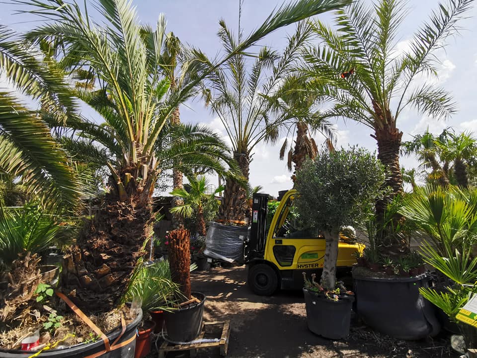 Schaffen Sie mit unseren großen Palmen eine eindrucksvolle Tropenatmosphäre. Das Foto zeigt eine schöne Auswahl unterschiedlicher Arten, von schlanken Fächerpalmen bis hin zu Palmen mit üppiger Krone. Diese Hingucker eignen sich perfekt für Festivals, Events und öffentliche Plätze. Erwecken Sie die Tropen mit unseren Palmen zum Leben, wo immer Sie sind! 🌿🌟
