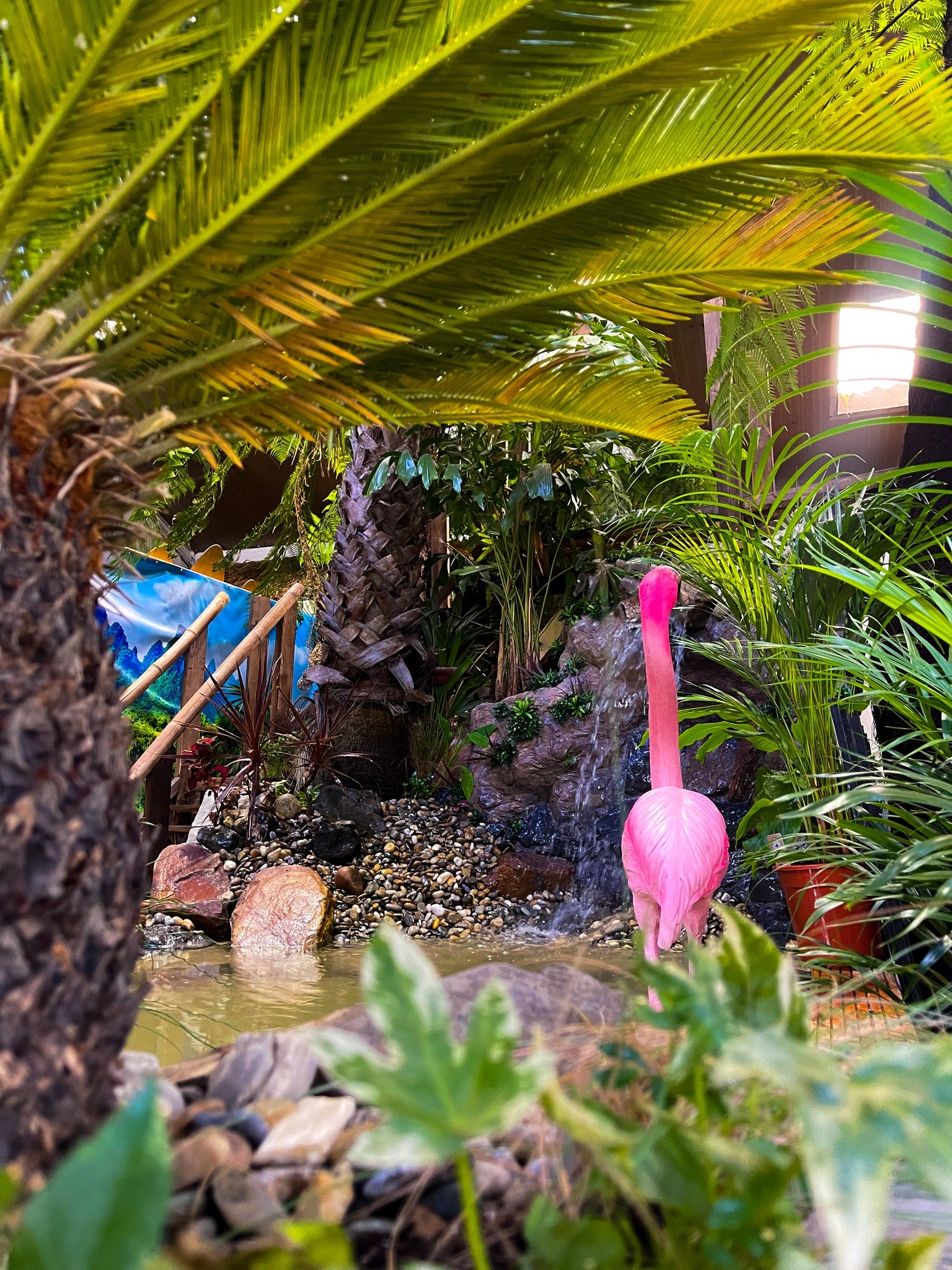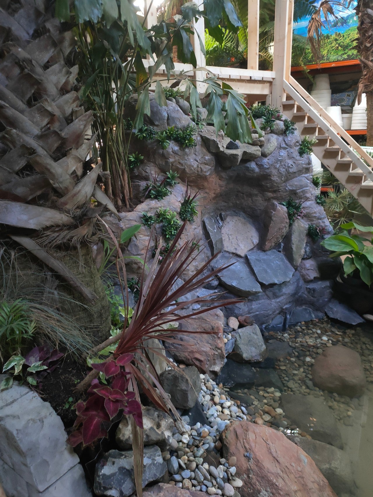 Für unsere Künstler ist das das Schönste, denn so können sie ihrer Kreativität freien Lauf lassen und ein Meisterwerk schaffen. Natürlich beschränken wir uns nicht nur auf unser sehr umfangreiches Sortiment an Dschungelpflanzen und Palmen, sondern haben uns auch auf (künstliche) Felsen, Teiche, Wasserfälle, Brunnen, Brücken und allerlei andere realistisch-natürlich wirkende Dekorationen und Einrichtungsgegenstände spezialisiert. Auch die Einrichtung von Auslaufzonen für Tiere ist möglich.