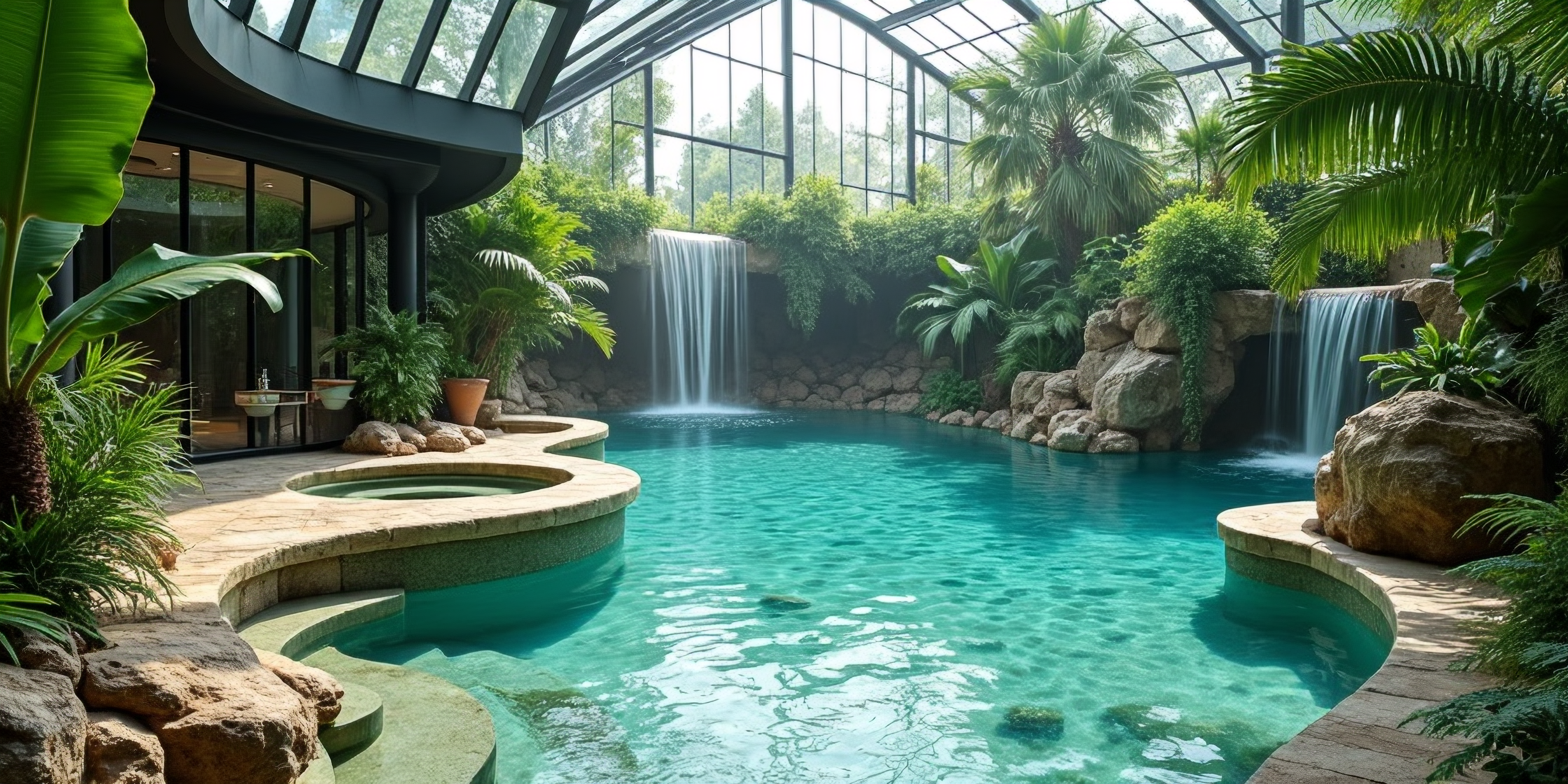 - Badkamers met Rotsen: Geef uw badkamer een natuurlijke uitstraling met kunstrotsen, watervallen en tropische beplanting, voor een rustige en luxe ervaring.